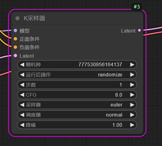 如果某个节点运行出现的错误,此时节点会标记为紫色,此时应该检查该节点和该节点前面的节点是否有参数错误,连接是否有误。